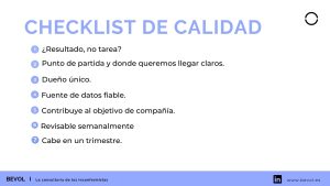 Es crucial comprender que un OKR no es una lista de tareas, no está diseñado para ligarse a un bonus, y no es una forma de controlar a los equipos. Esta distinción es fundamental para Bevol, donde abogamos por la innovación organizativa que libera a las personas del micromanagement y las estructuras obsoletas.
